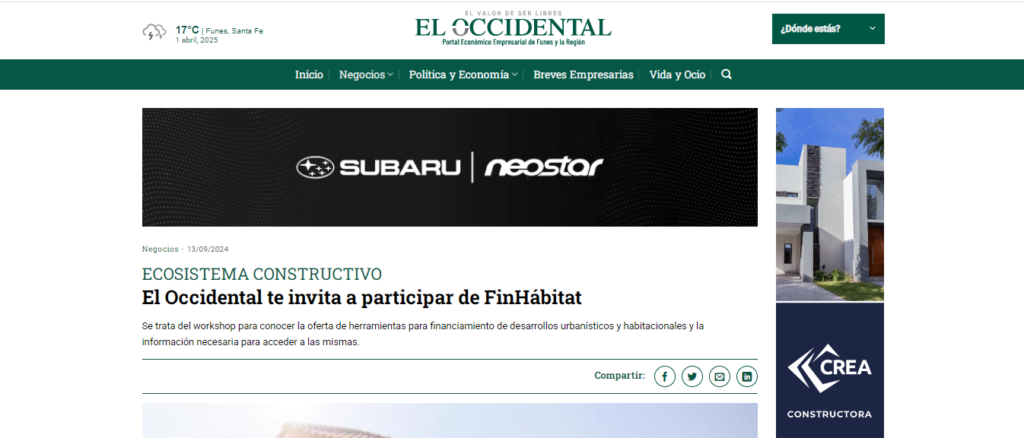Se trata del workshop para conocer la oferta de herramientas para financiamiento de desarrollos urbanísticos y habitacionales y la información necesaria para acceder a las mismas. Nota del portal El Occidental, del 13 septiembre 2024.