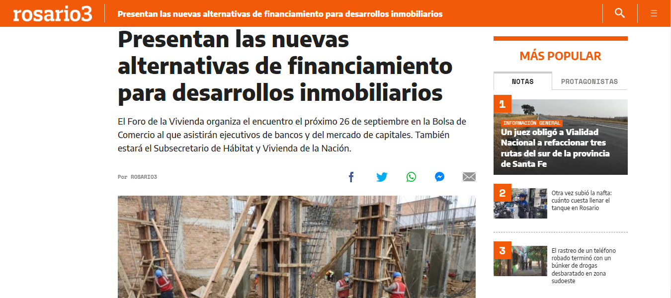 El Foro de la Vivienda organiza el encuentro el próximo 26 de septiembre en la Bolsa de Comercio al que asistirán ejecutivos de bancos y del mercado de capitales. También estará el Subsecretario de Hábitat y Vivienda de la Nación. Nota del Portal Rosario3.com
